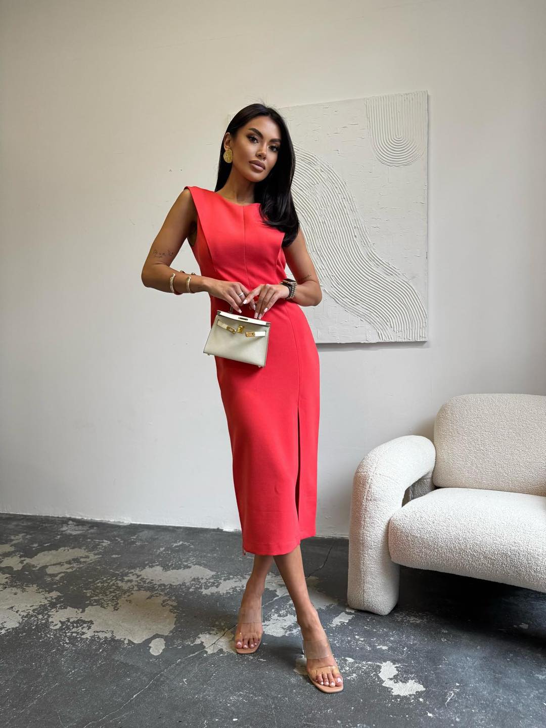 Edan márkájú, prémium minőségű, elegáns lengyel midi ruha korall színben.