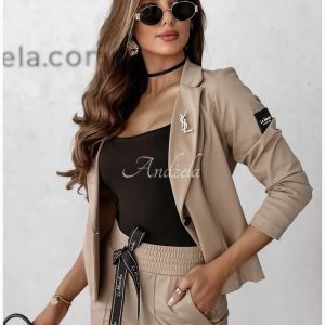La Blanche márkájú, kiváló minőségű , sportosan elegáns lengyel kosztümszett zöld színben. A zakó karcsúsított, gombos, ujján márkajelzéssel. A nadrág hátulja zseb nélküli, fenék kerekítős szabás.