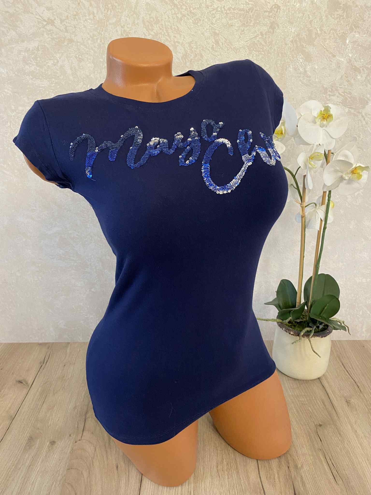 Mayo Chix basic felsők, S méretben, átforduló, flitteres márkajelzéssel.