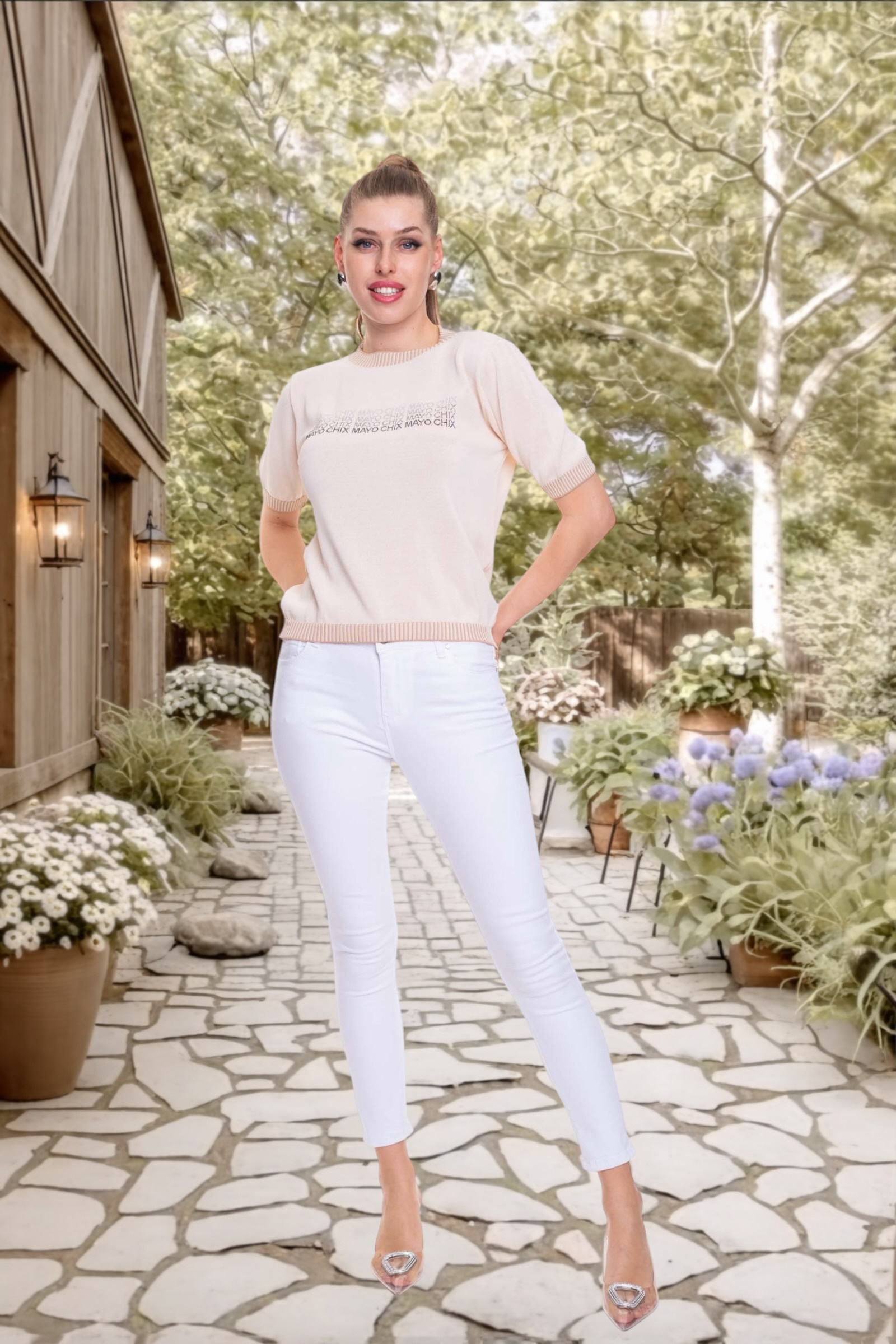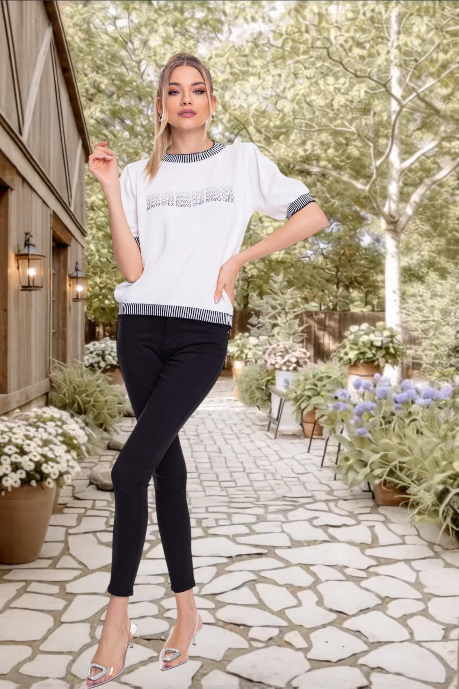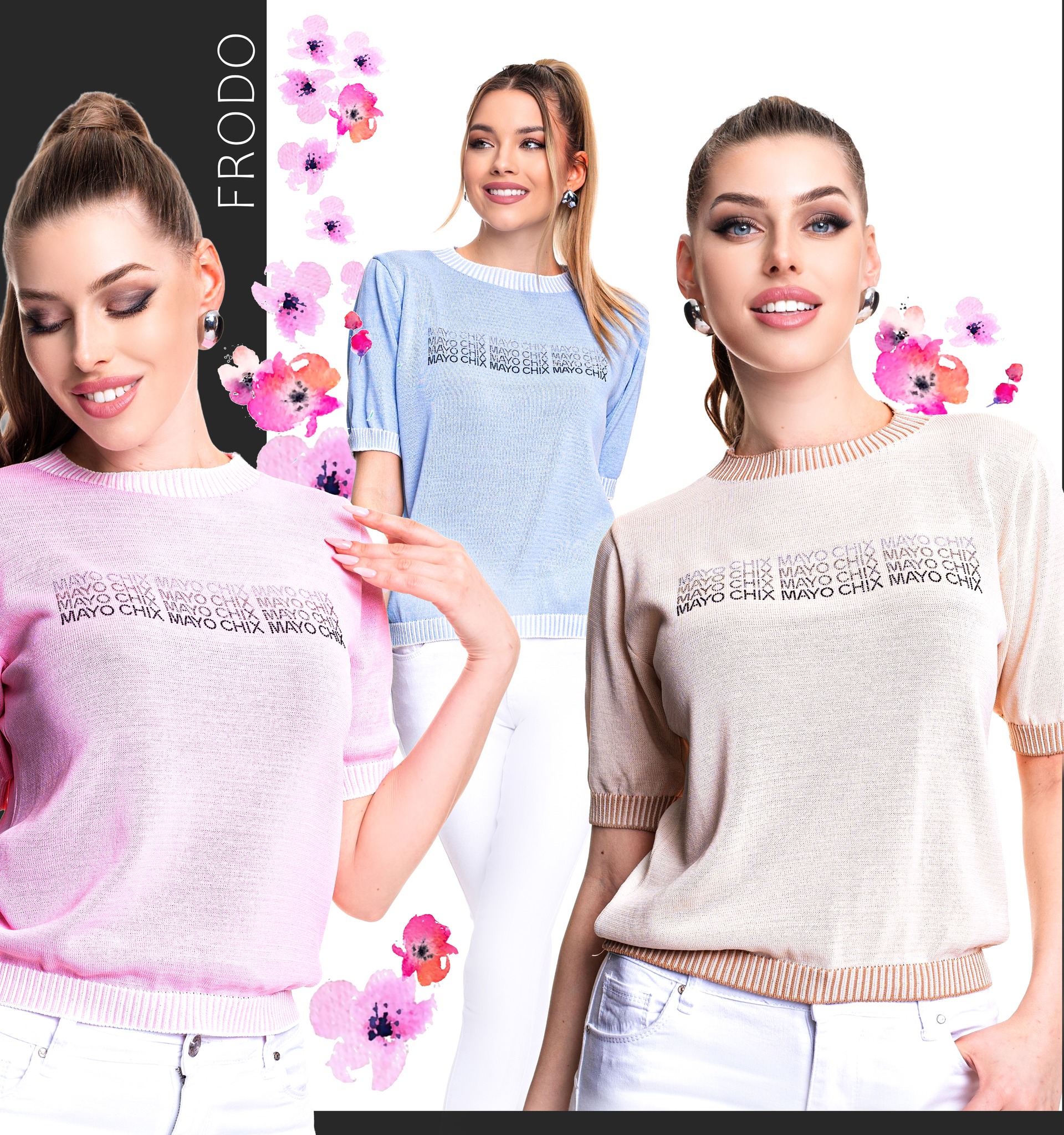 Mayo Chix Frodo vékony kötött felső. Lezser szabásvonalú felső, strasszköves márkajelzéssel.
