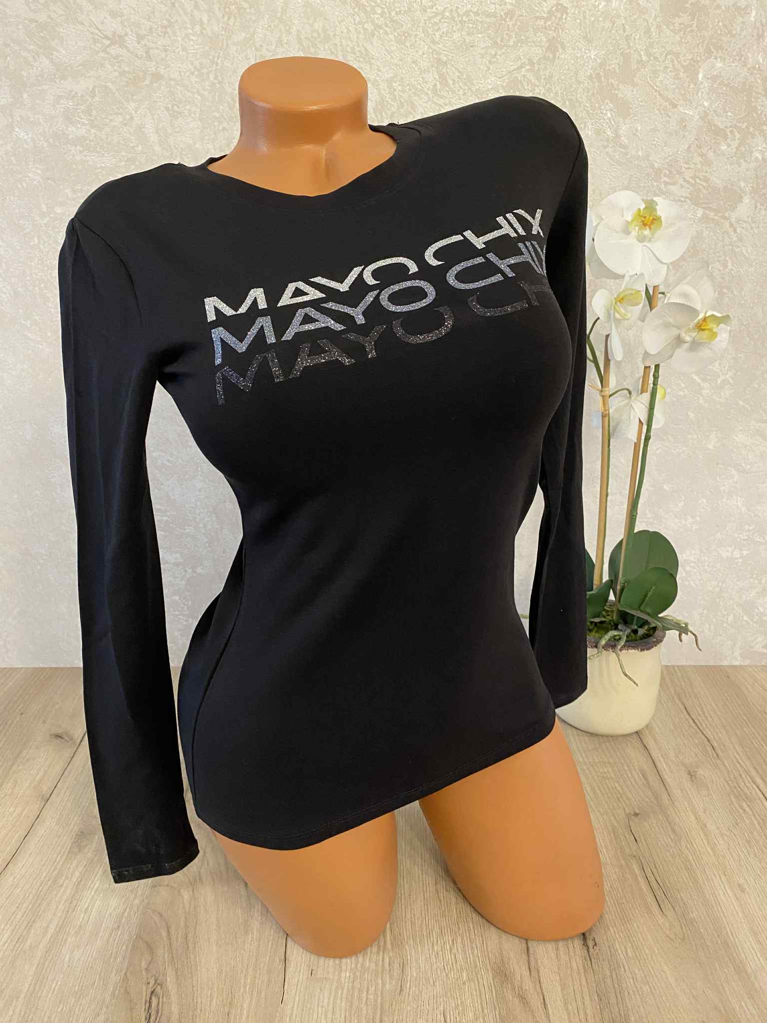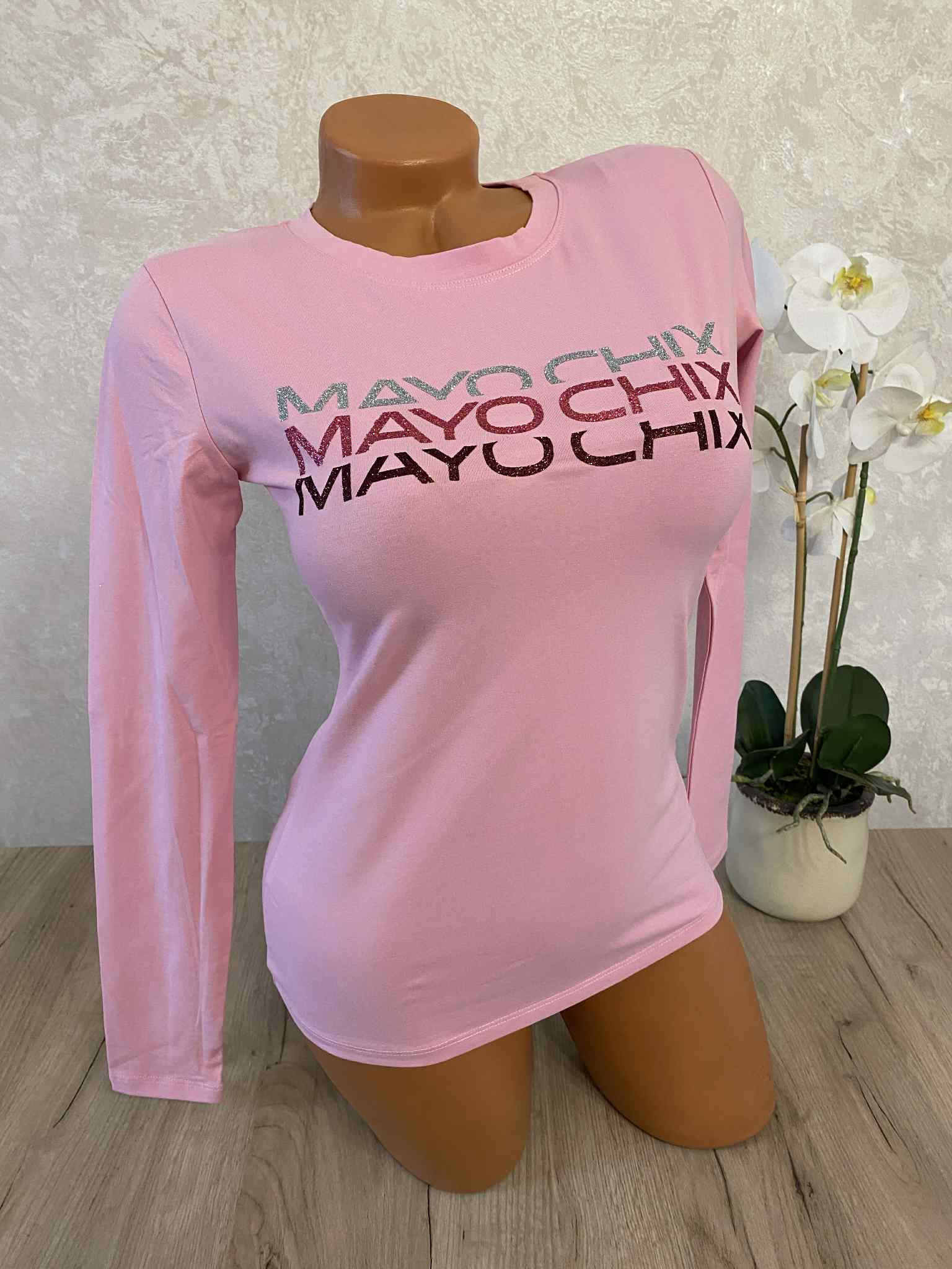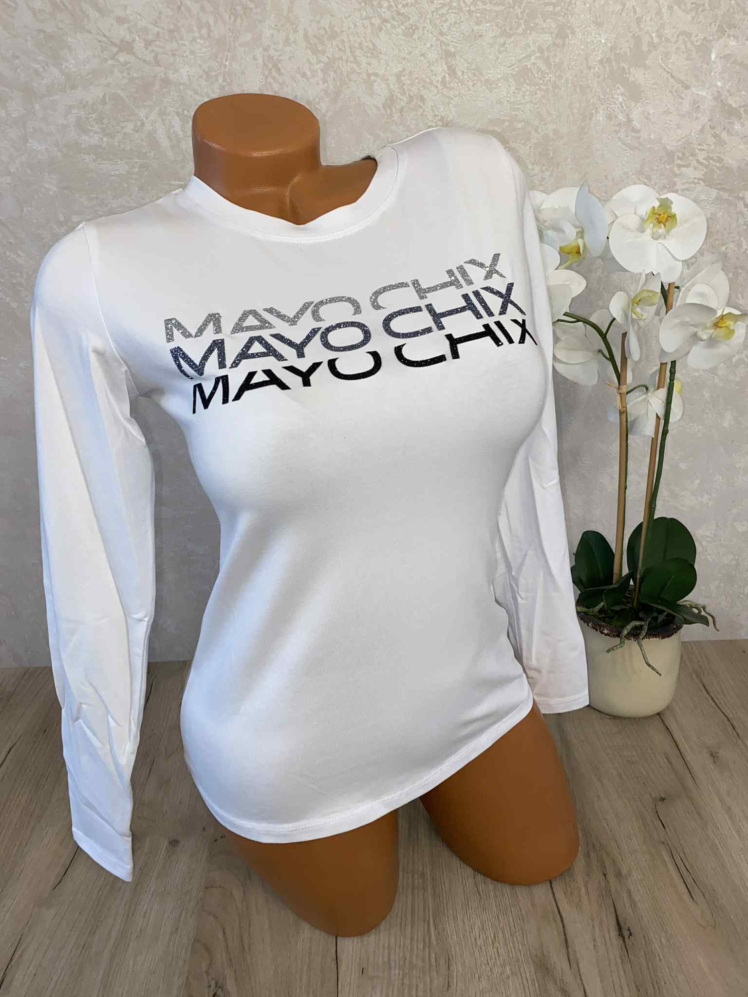Mayo Chix basic felsők, S méretben, glitteres márkajelzéssel, elasztikus anyagból.