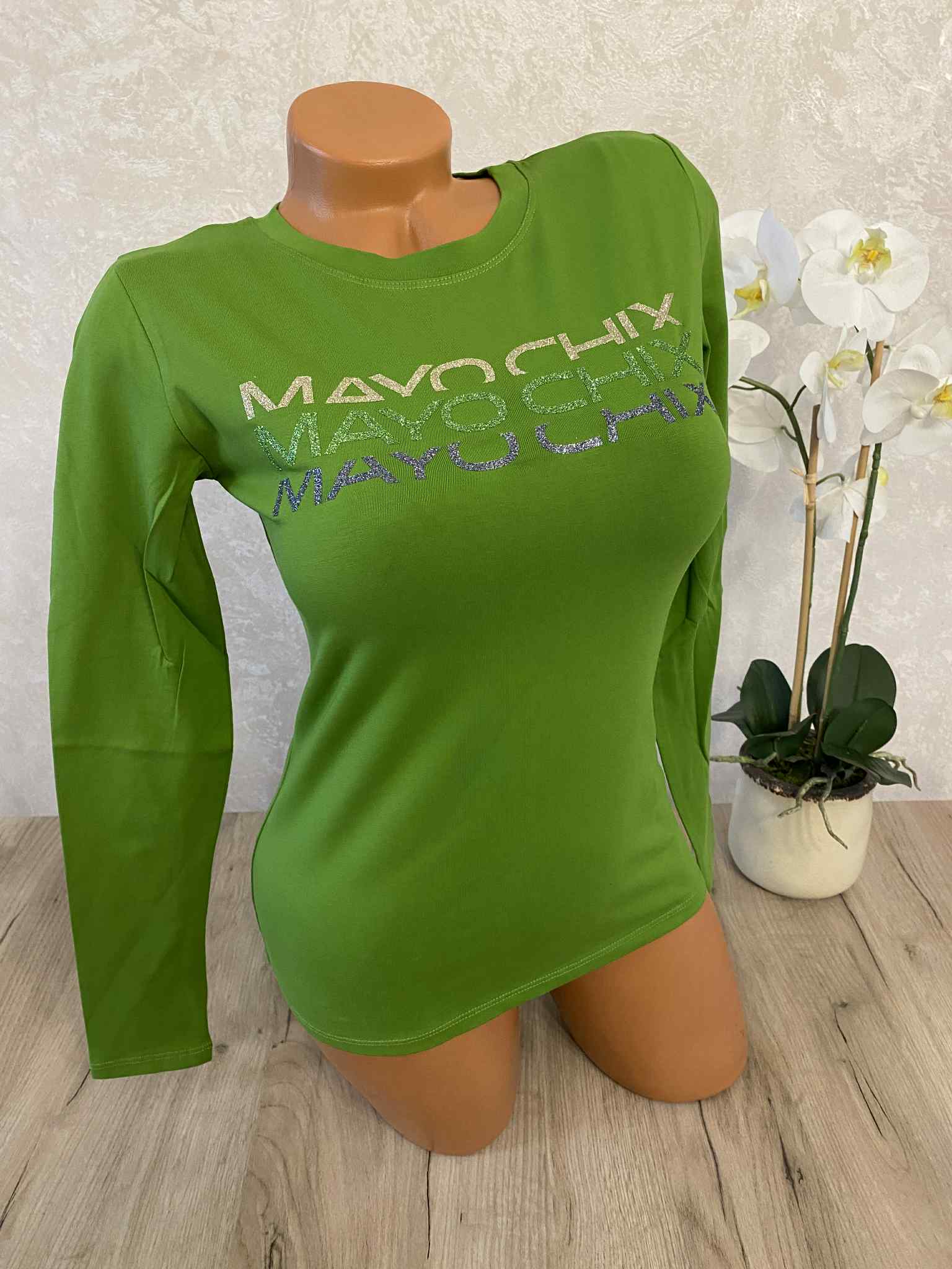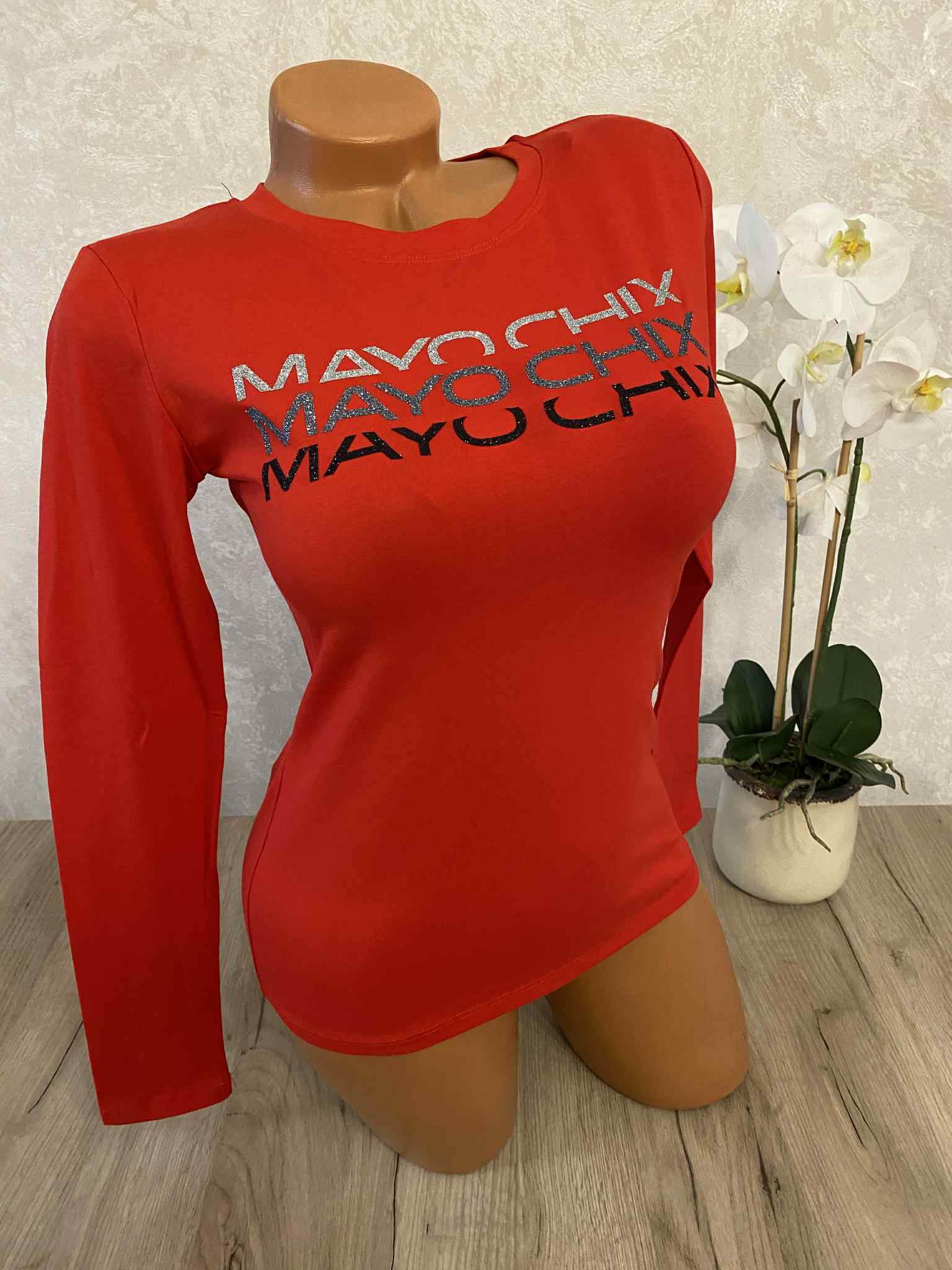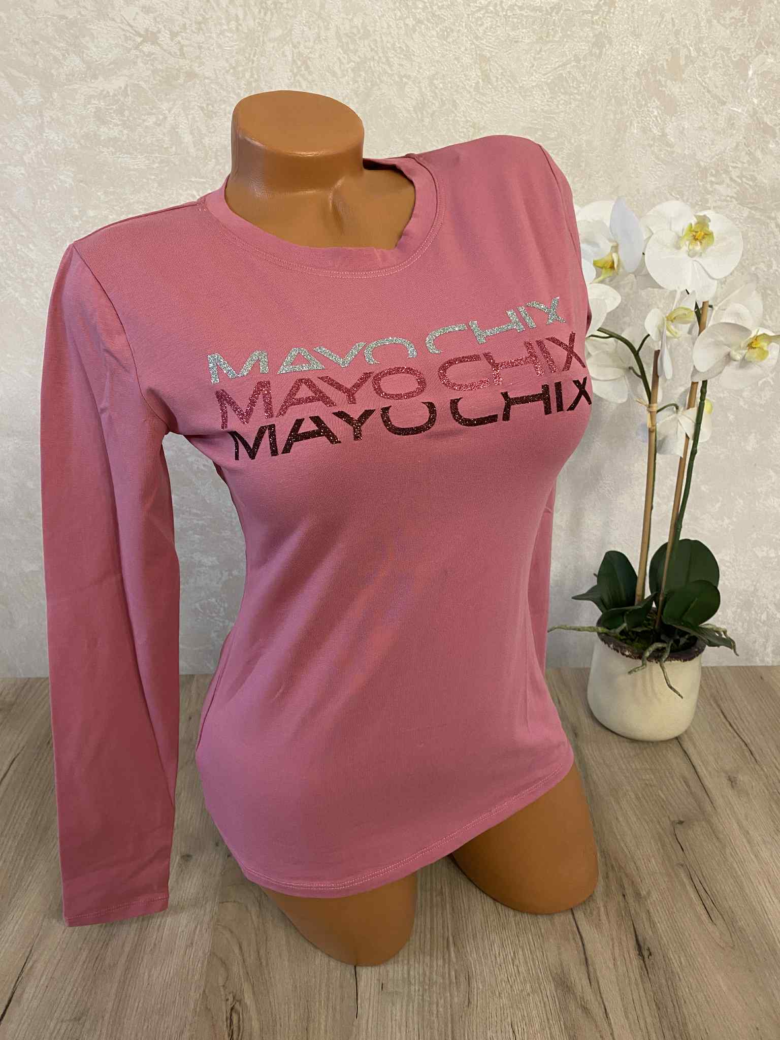 Mayo Chix basic felsők, S méretben, glitteres márkajelzéssel, elasztikus anyagból.