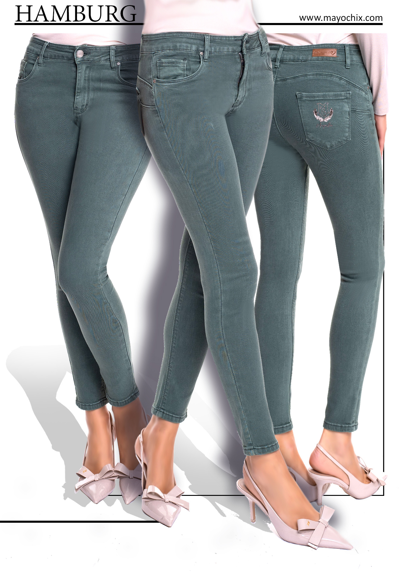 Mayo Chix Hamburg nadrág keki színben. Elasztikus anyagból készült szűk szárú farmernadrág, dombor matricanyomott márkajelzéssel.