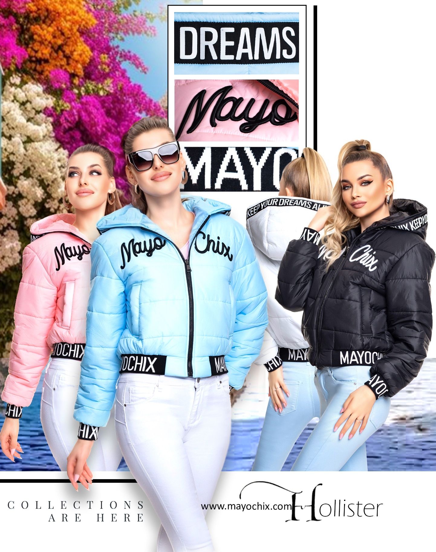 Mayo Chix Hollister steppelt dzseki rózsaszínben. Rövid fazonú pufi dzseki kapucnival, hímzett és filmnyomott márkajelzésekkel.
