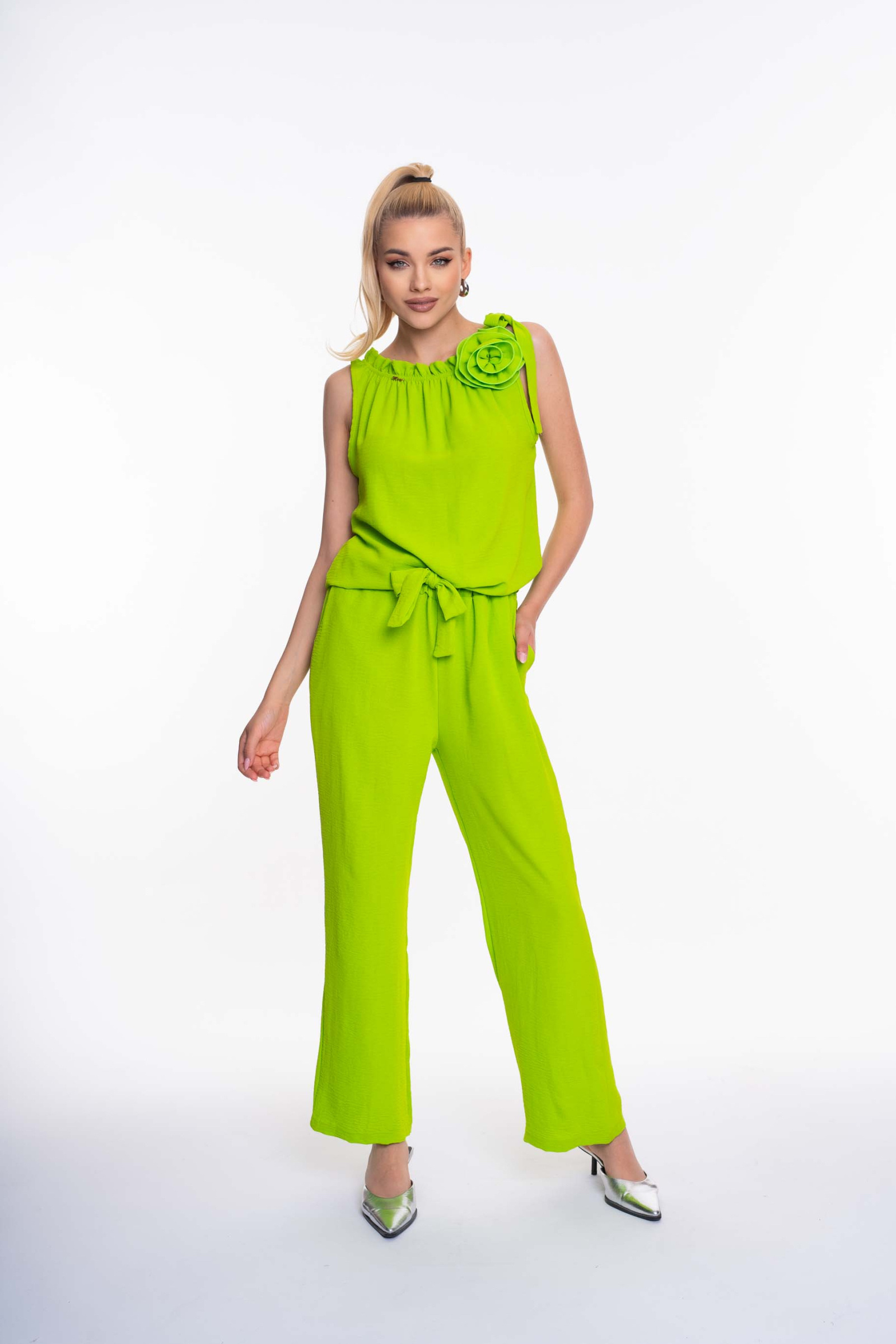 Mayo Chix Limoges overall. Enyhén elasztikus krepp anyagból készült zsebes overall, vállán masnival, gumis derekán saját anyagából megkötővel, kis fém márkajelzéssel.