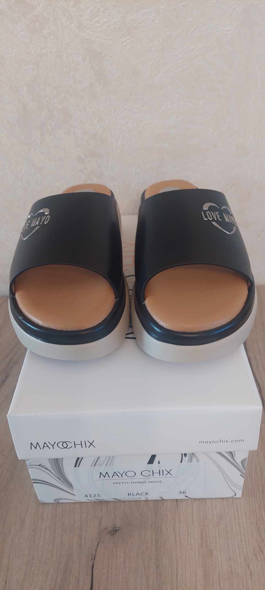 Mayo Chix papucs fekete színben, emelt talppal , szintetikus felső és belsőrésszel.