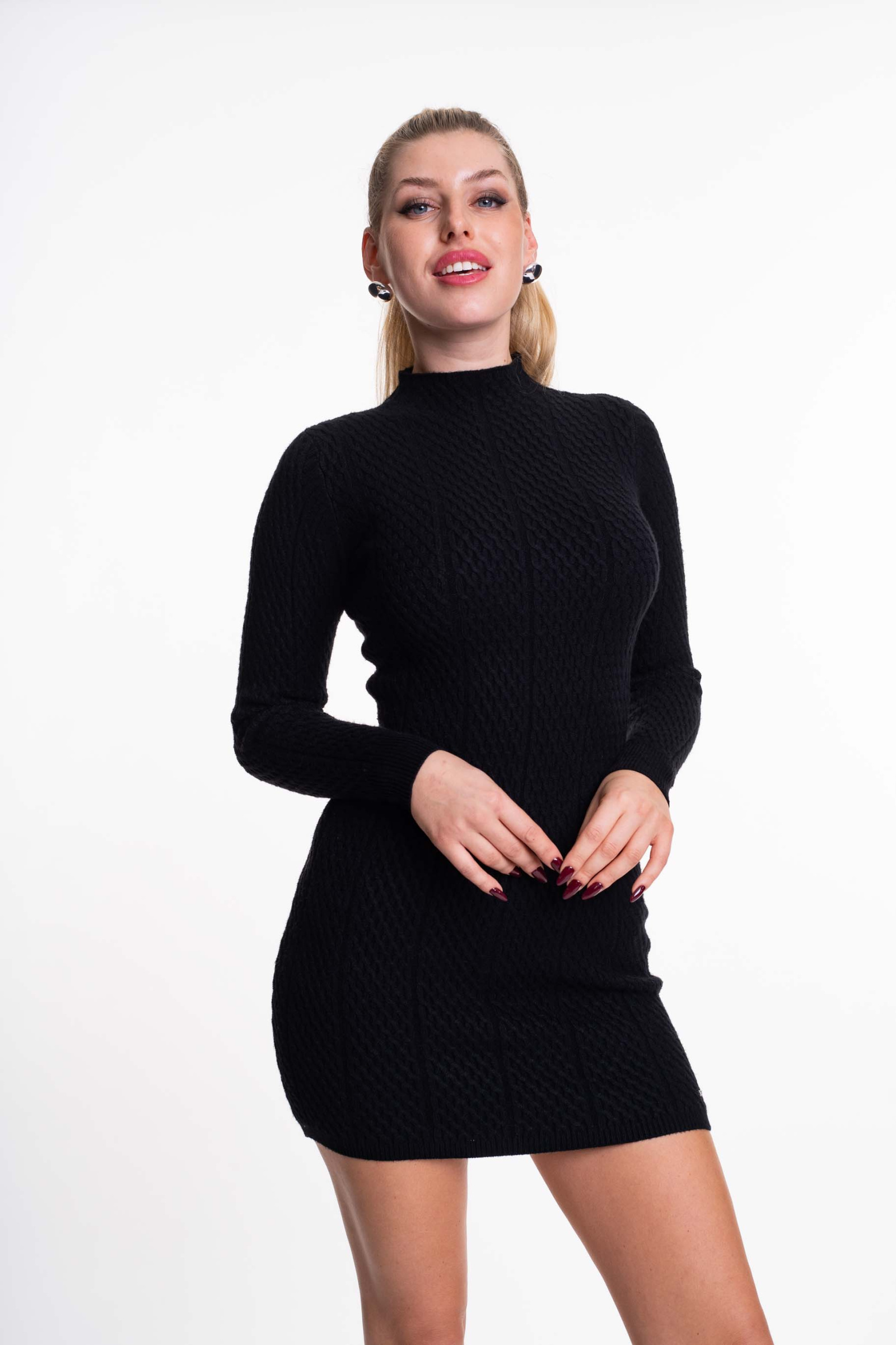 Mayo Chix , karcsúsított fazonú kötött ruha , emelt nyakrésszel, anyagában kötött mintával, kis fém márkajelzéssel.