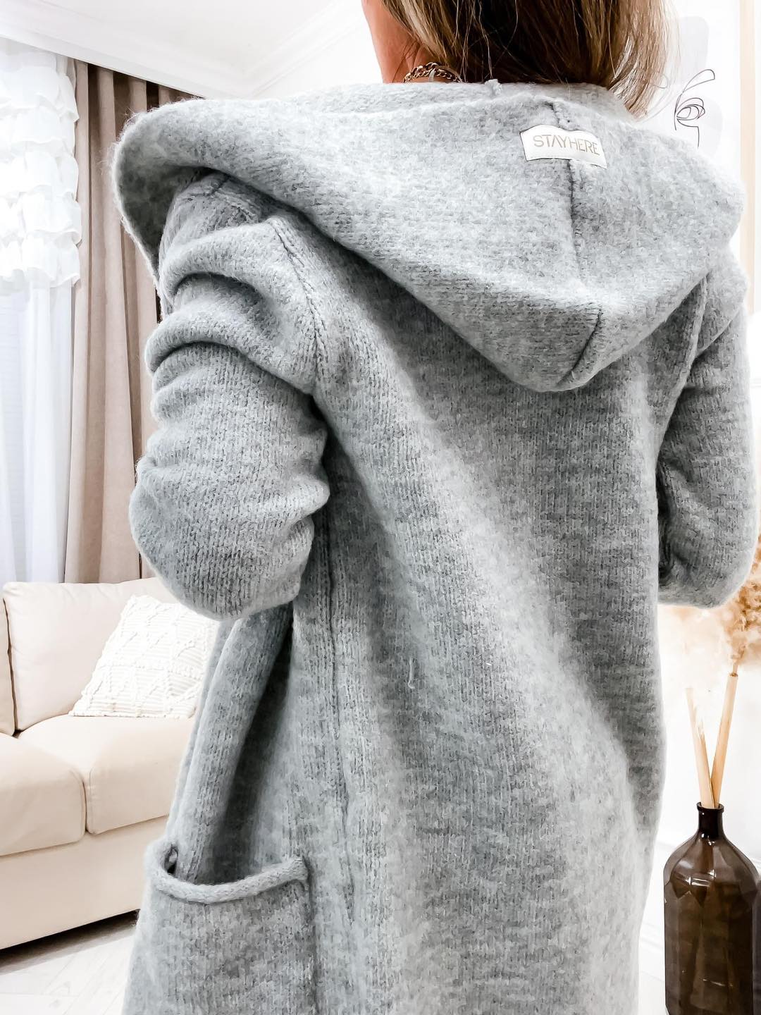StayHere márkájú, prémium minőségű lengyel kardigán. Laza fazonú kardigán oldalzsebekkel, nagyobb kapucnival, rávarrt márkajelzéssel. Egyméretes.